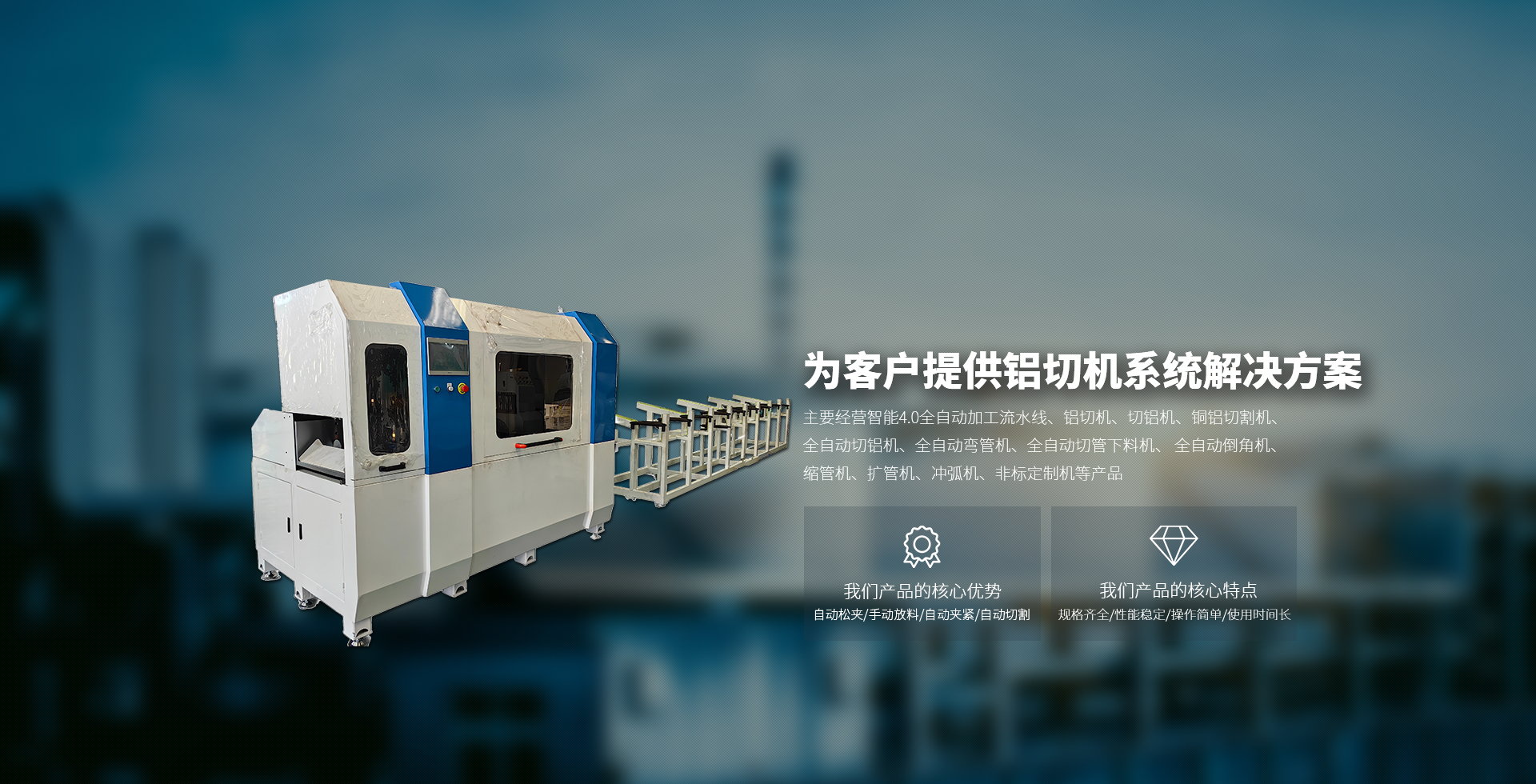 主要經(jīng)營智能4.0全自動加工流水線、鋁切機、切鋁機、銅鋁切割機、全自動切鋁機、全自動彎管機、全自動切管下料機、 全自動倒角機、縮管機、擴管機、沖弧機、非標(biāo)定制機等產(chǎn)品